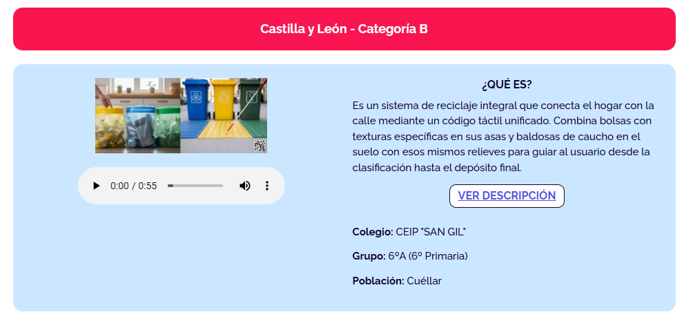 GANADORES DE CASTILLA Y LEÓN EN LA CATEGORÍA B EN EL 42 Concurso Escolar "GENERACIÓN INNOVA. Imaginar nos hace iguales" de la ONCE.